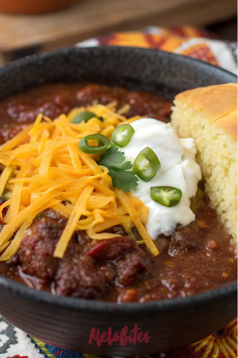 - The Toppings Are Half the Fun: The best part of chili night is the toppings bar! Set out small bowls of shredded cheese, sour cream or Greek yogurt, chopped avocado, fresh cilantro, crushed tortilla chips, and sliced jalapeños so everyone can customize their own bowl.