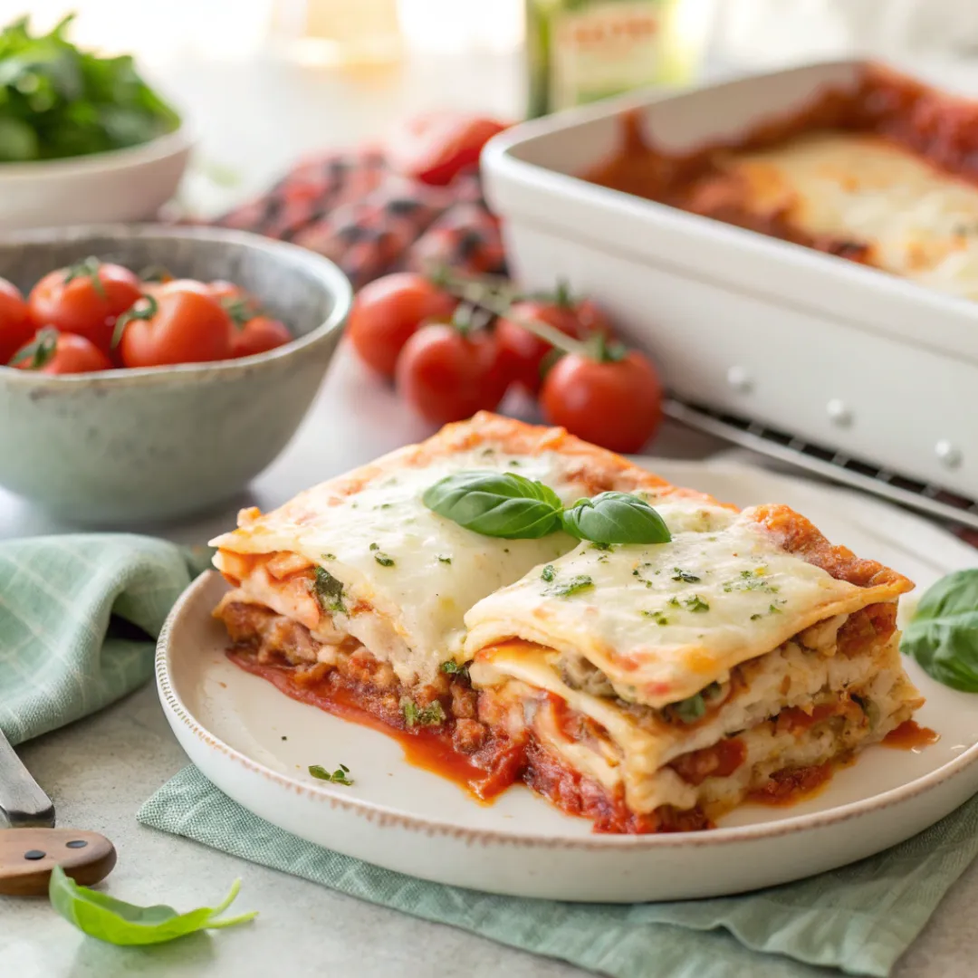 5. What is the best way to serve this hearty lasagna? This rich and hearty lasagna is a fantastic main course on its own. It is wonderful served with a side of warm, crusty garlic bread for dipping into the delicious sauce. A simple green salad with a light, acidic vinaigrette is also a perfect and refreshing accompaniment to cut through the richness of the cheese.